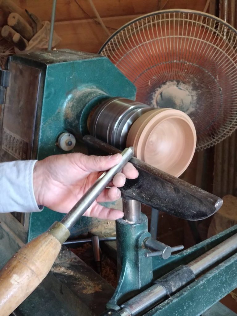 器をどうやってつくろうかと探し始めて、ウッドターン:木工旋盤を買うところから始めました。海外のビデオを見ながらやっていましたがどうもはっきりつかめない。そこで、3年間毎週末当時住んでいた浦和から小田原にある木工ろくろ教室に通って学びました。