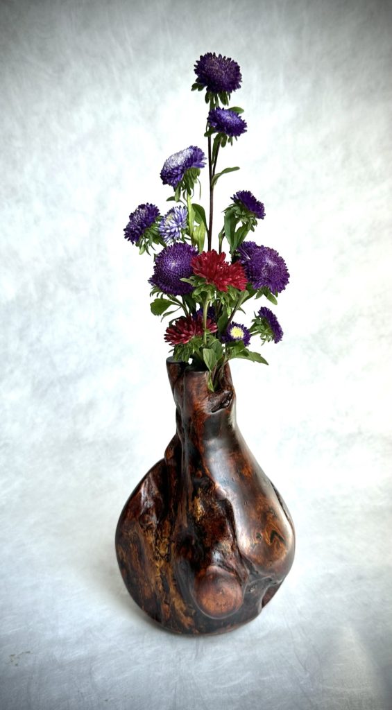 オーストラリアに旅してクイーンズランド州ケアンズを歩いていた時に素朴な木の花器を見つけ魅せられました。自分でも作ってみたいと。